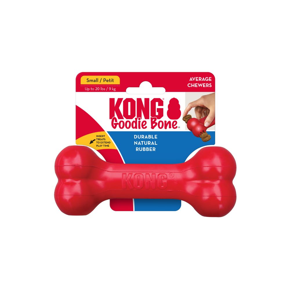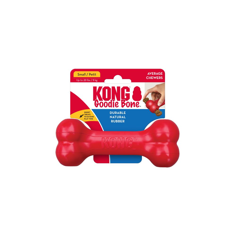el juguete kong goodie bone™ atrae a los perros que disfrutan masticando. fabricado con la exclusiva fórmula de caucho rojo...