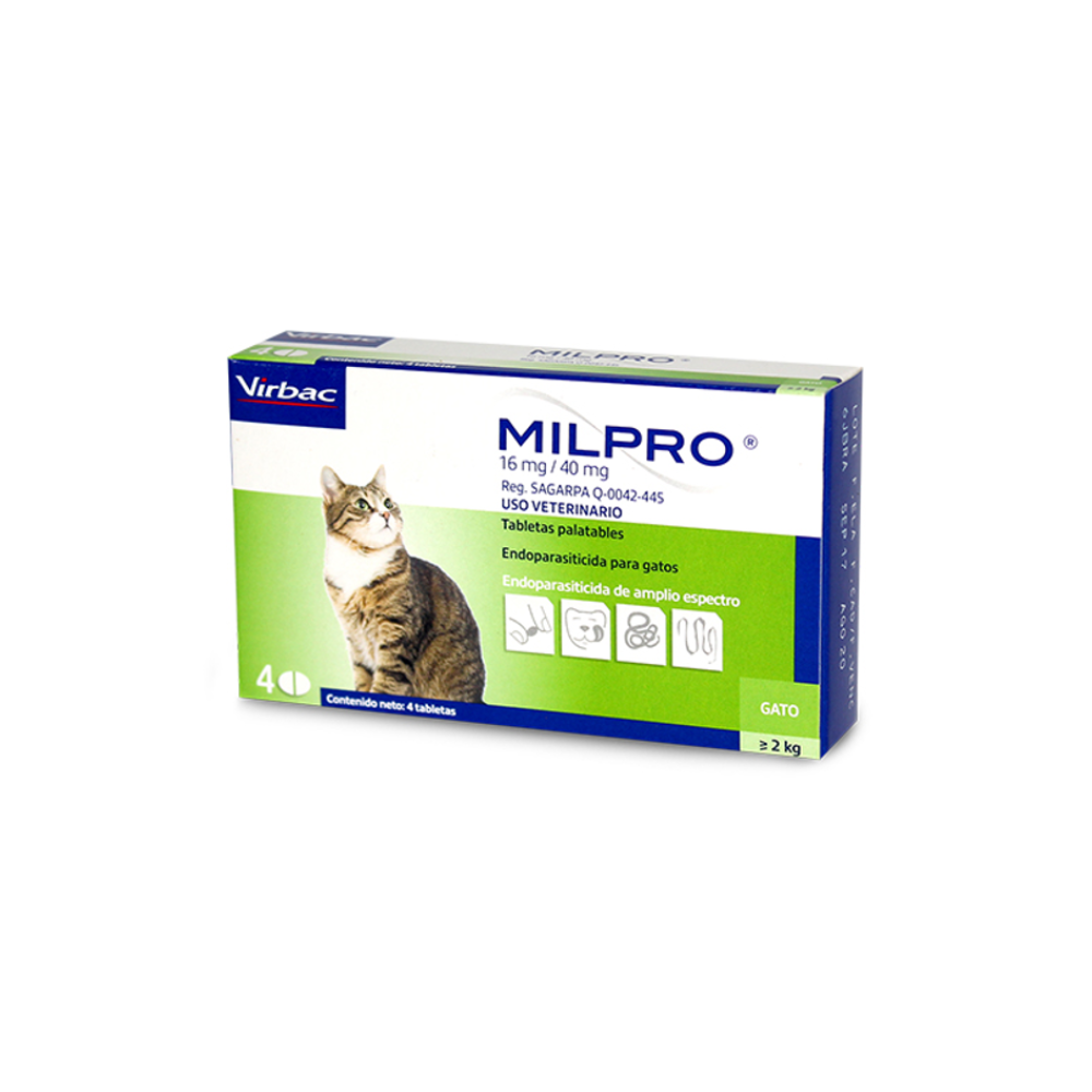 Milpro Kitten 0.5-10Kg 4Tab Comprimido masticable de amplio espectro para el control de parásitos intestinales en gatitos de 0.5 a...