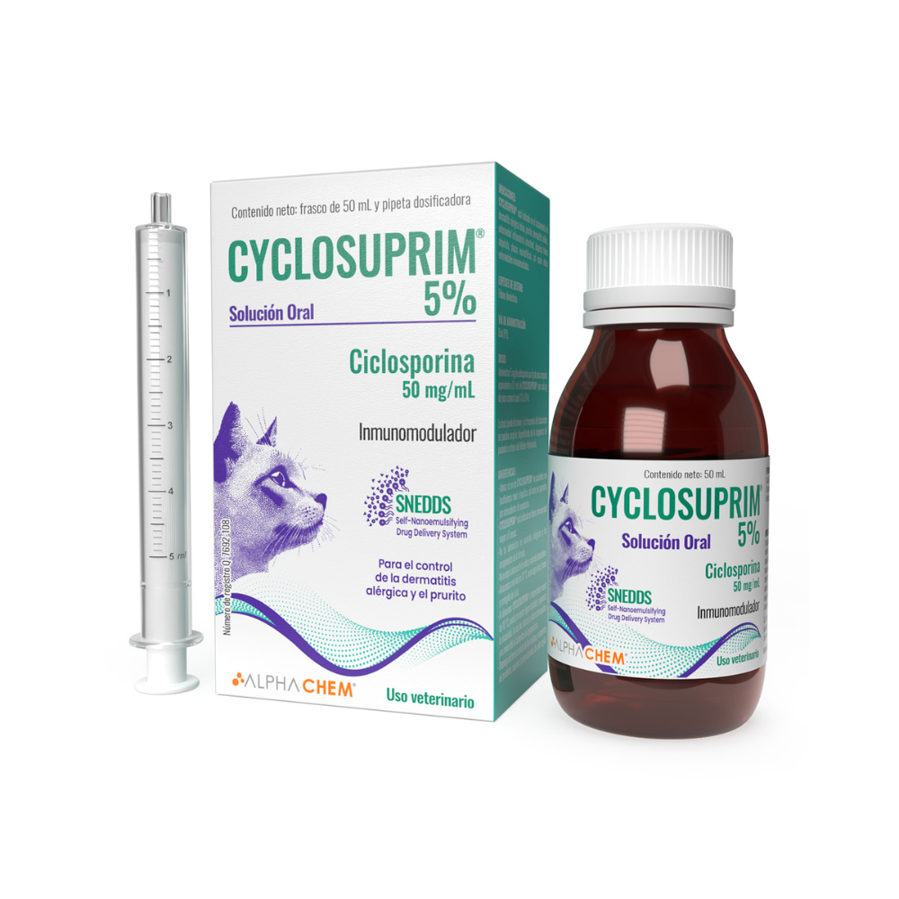 Cyclosuprim 5% 50 Ml Medicamento de uso veterinario indicado para el manejo de enfermedades inmunomediadas y dermatológicas en perros y gatos....
