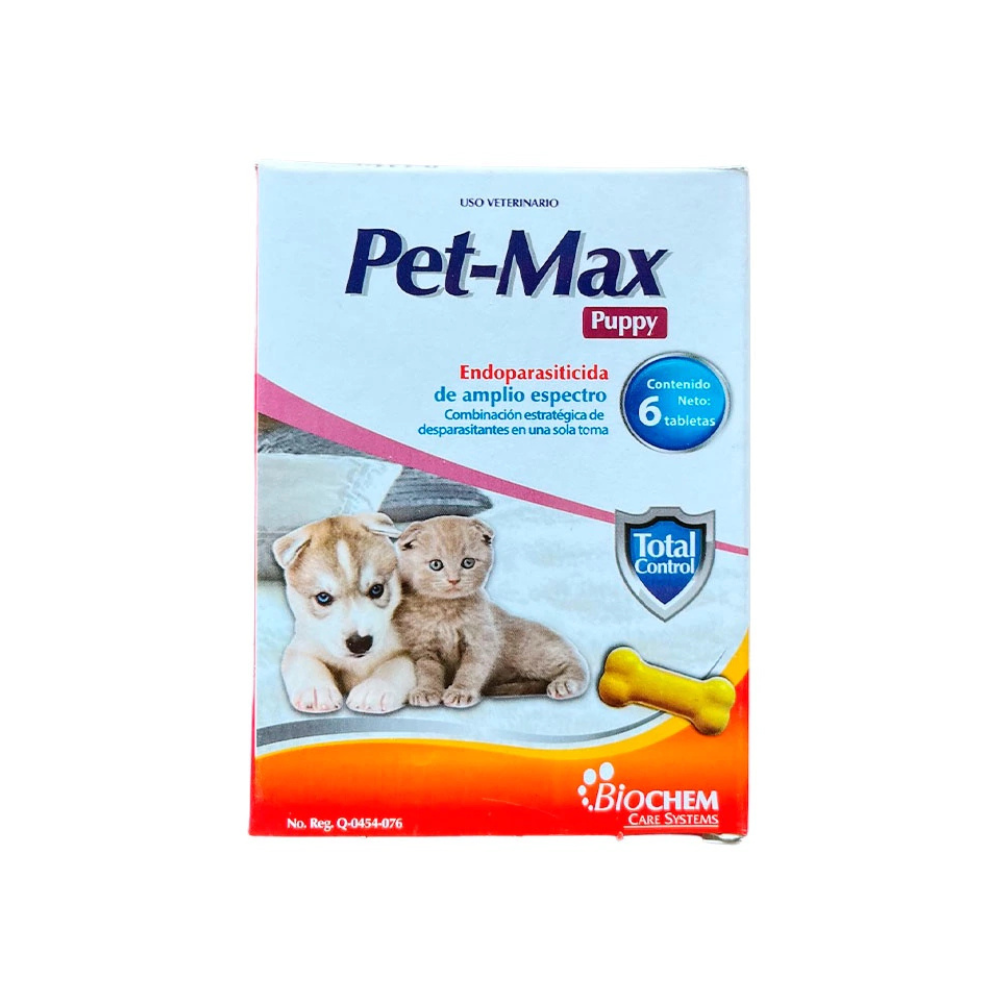 Pet-Max .5/5Kg 6Tab Puppy Suplemento de uso veterinario indicado para apoyar el crecimiento, desarrollo y fortalecimiento integral de cachorros. Descripción general...