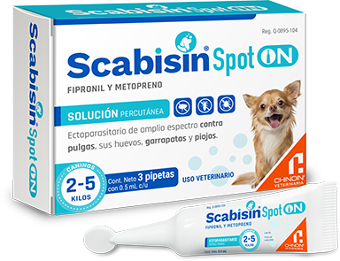 CANEFARMAChinoin Scabisin Spot On 1 Pipeta 2Ml (10-20Kg)es una solución insecticida y acaricida de uso tópico (percutáneo) que contiene la asociación entre un principio activo adulticida (fipronil)... $ 249.00 MXN$ 249.00 MXN$ 249.00 MXN1 Unidades Disponibles