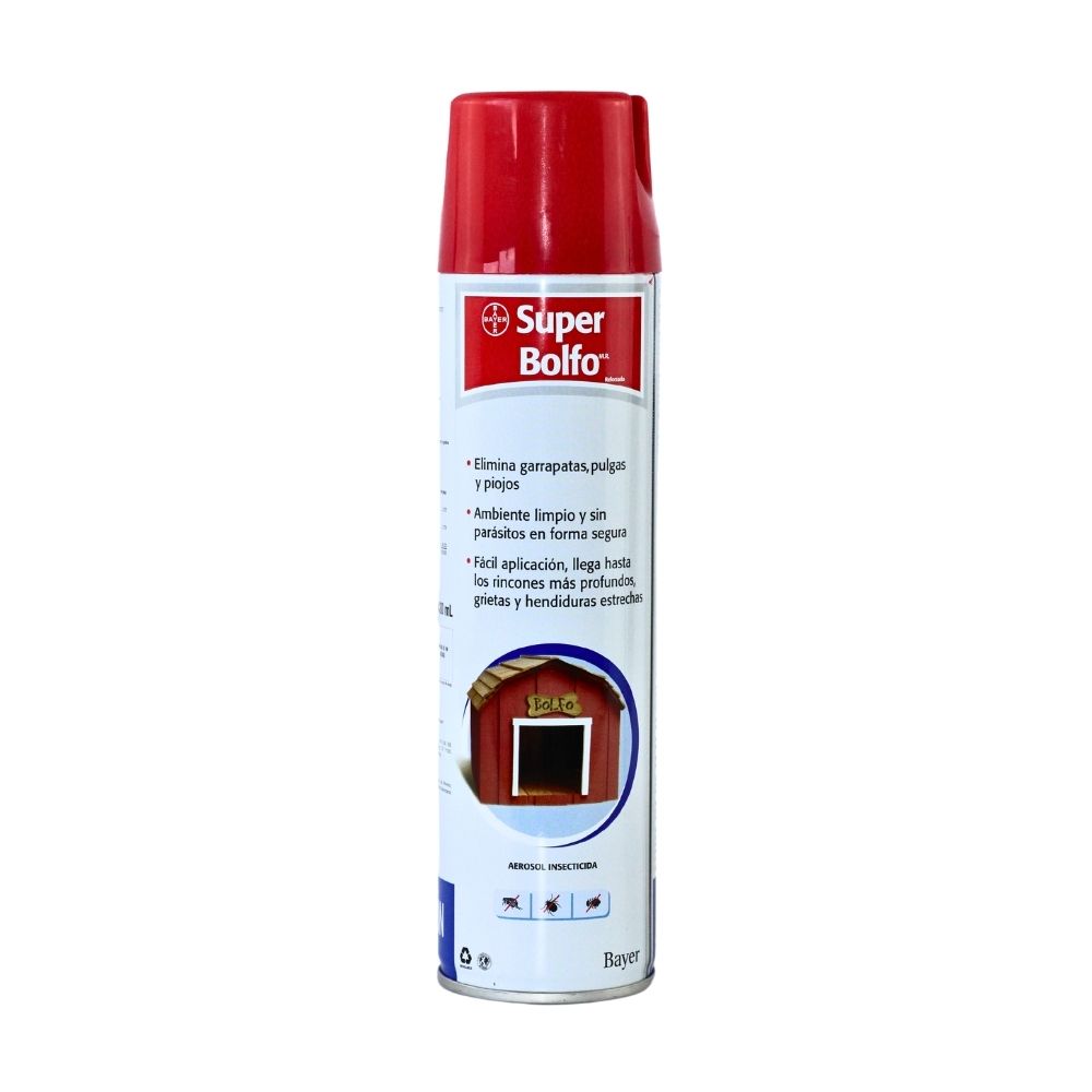 Super Bolfo Spray es un insecticida en aerosol de uso externo, formulado para eliminar pulgas, garrapatas y piojos en perros...
