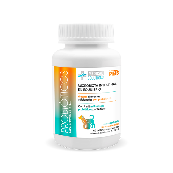 fancy pets® medical solutions probióticos para perros y gatos, adicionados con prebióticos, equilibran la comunidad microbiana intestinal, regulando sus funciones...