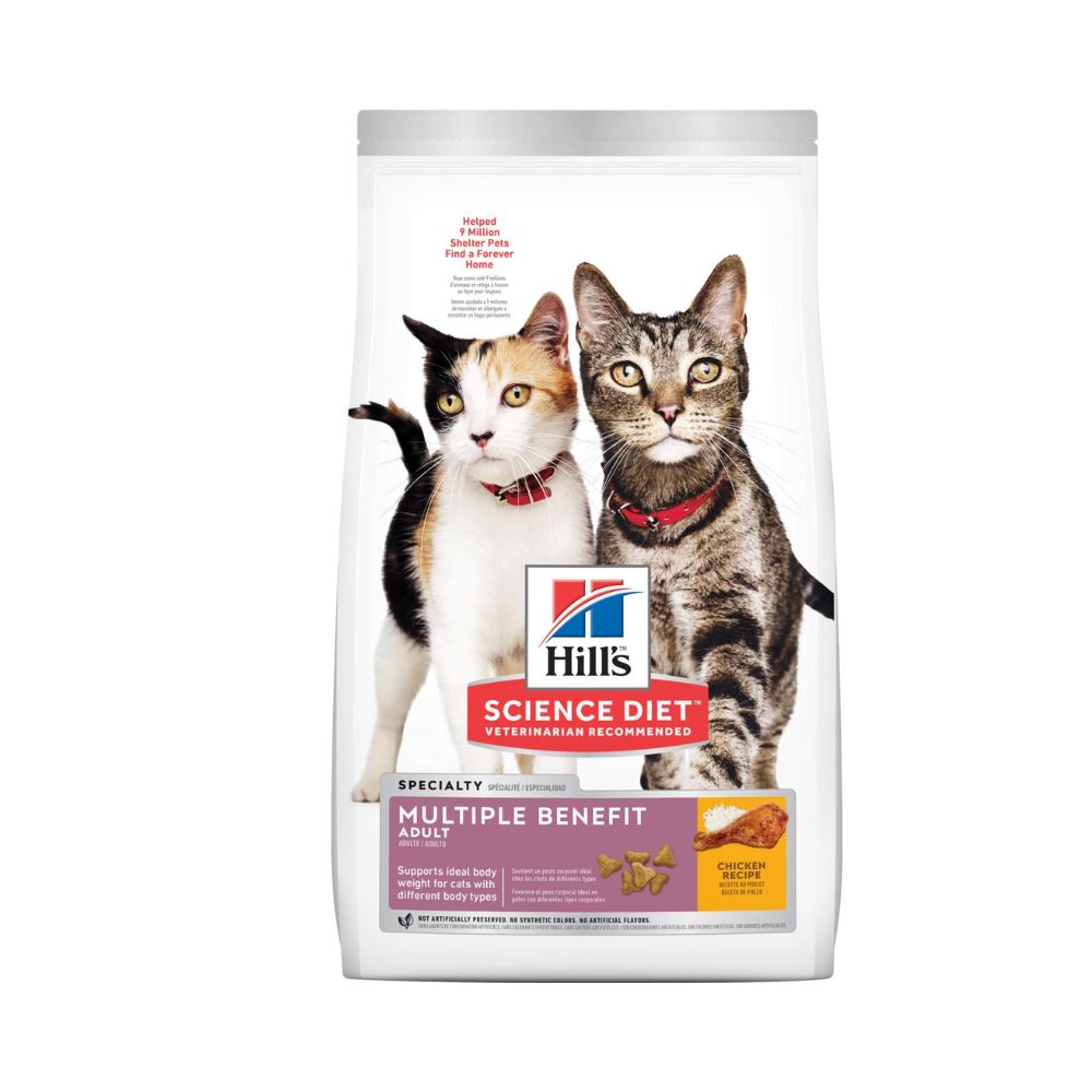El alimento seco para gatos Hills™ Science Diet™ Multiple Benefit Adult es ideal para hogares con varios gatos. La l-carnitina...
