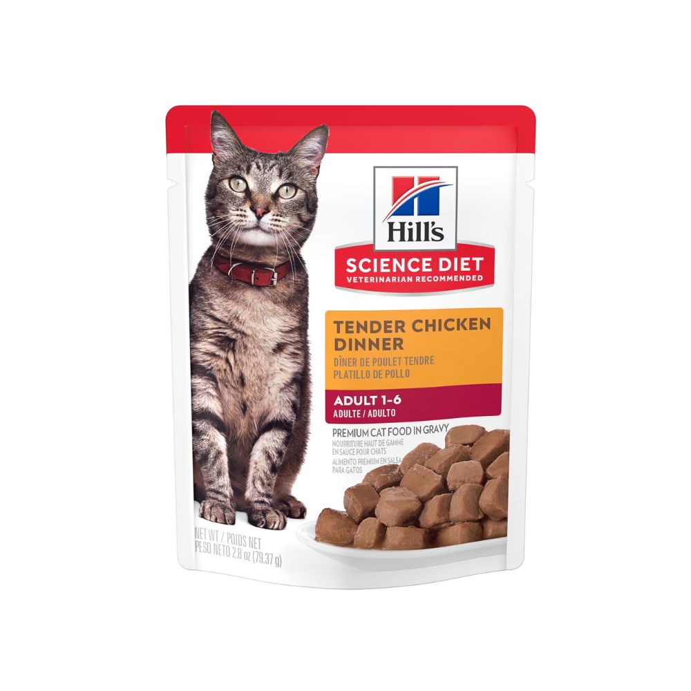 La comida húmeda para gatos Science Diet ahora viene en un pouch que es fácil de abrir y fácil de servir....