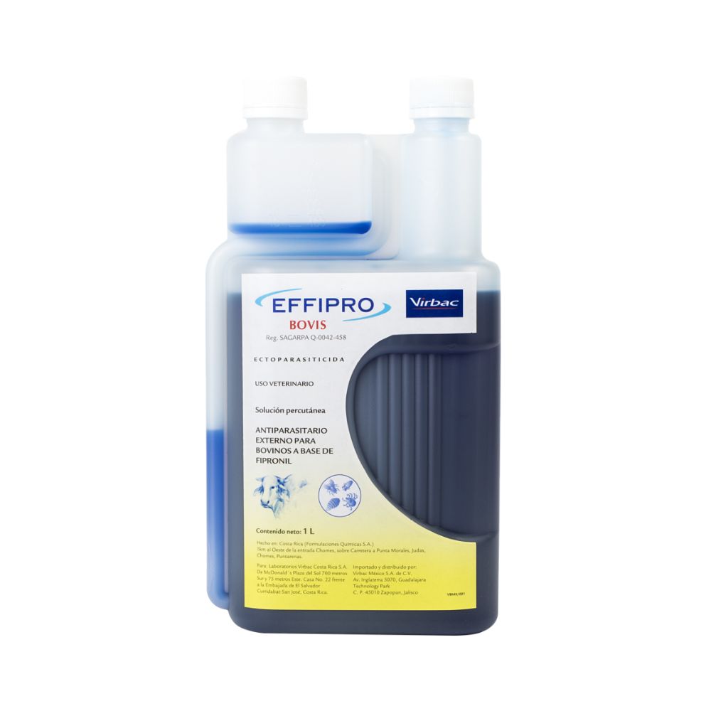 Effipro Bovis 1 L Ectoparasiticida de aplicación tópica para bovinos, diseñado para controlar garrapatas, piojos y moscas del cuerno de...