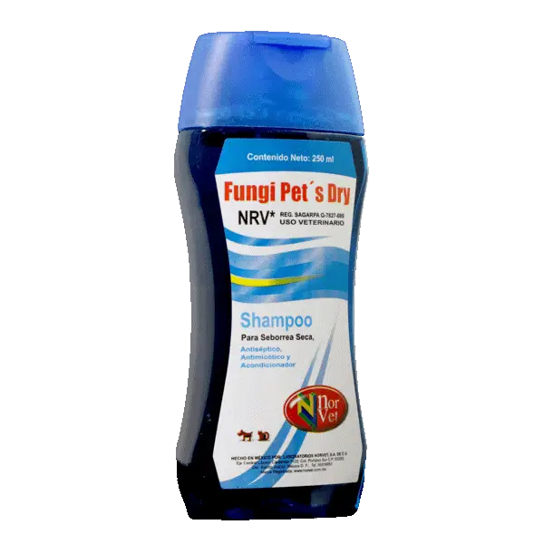 fungi pe´t dry nrv* es un shampoo queratolítico, queratoplastico, fungicida, para el uso en perros y gatos con problemas dermatológicos...