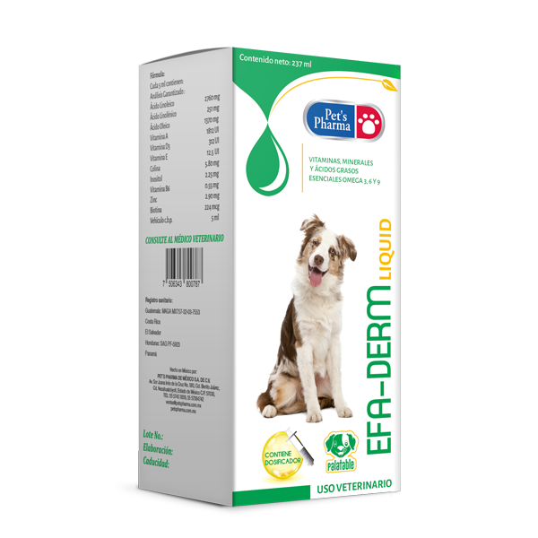 suplemento premium para perros y gatos, que ofrece un perfecto balance entre ácidos grasos omega 3, 6 y 9.efa-derm liquid...