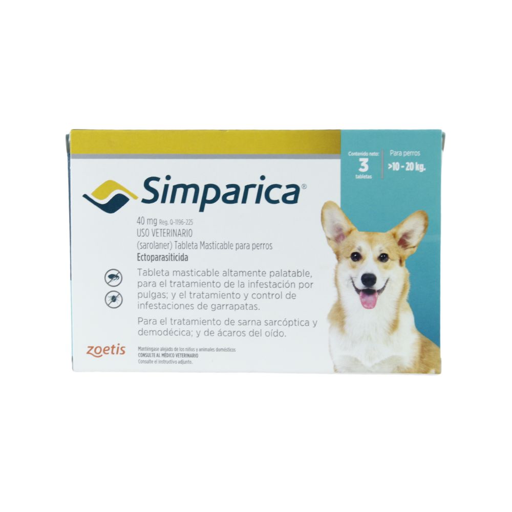 simparica 40 mg es un antiparasitario oral efectivo que protege a perros de 10 a 20 kg contra pulgas, garrapatas...