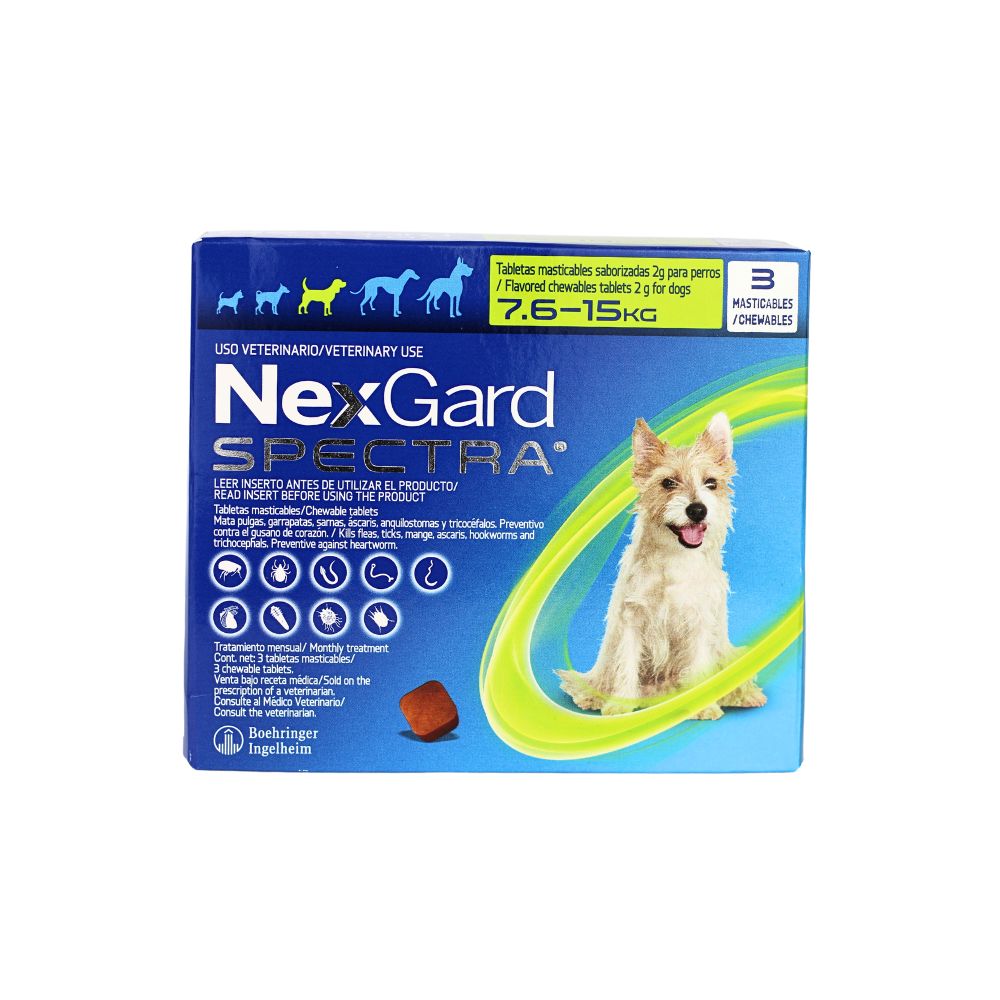 nexgard spectra m es un antiparasitario masticable de amplio espectro para perros de 7.6 a 15 kg, que protege contra...