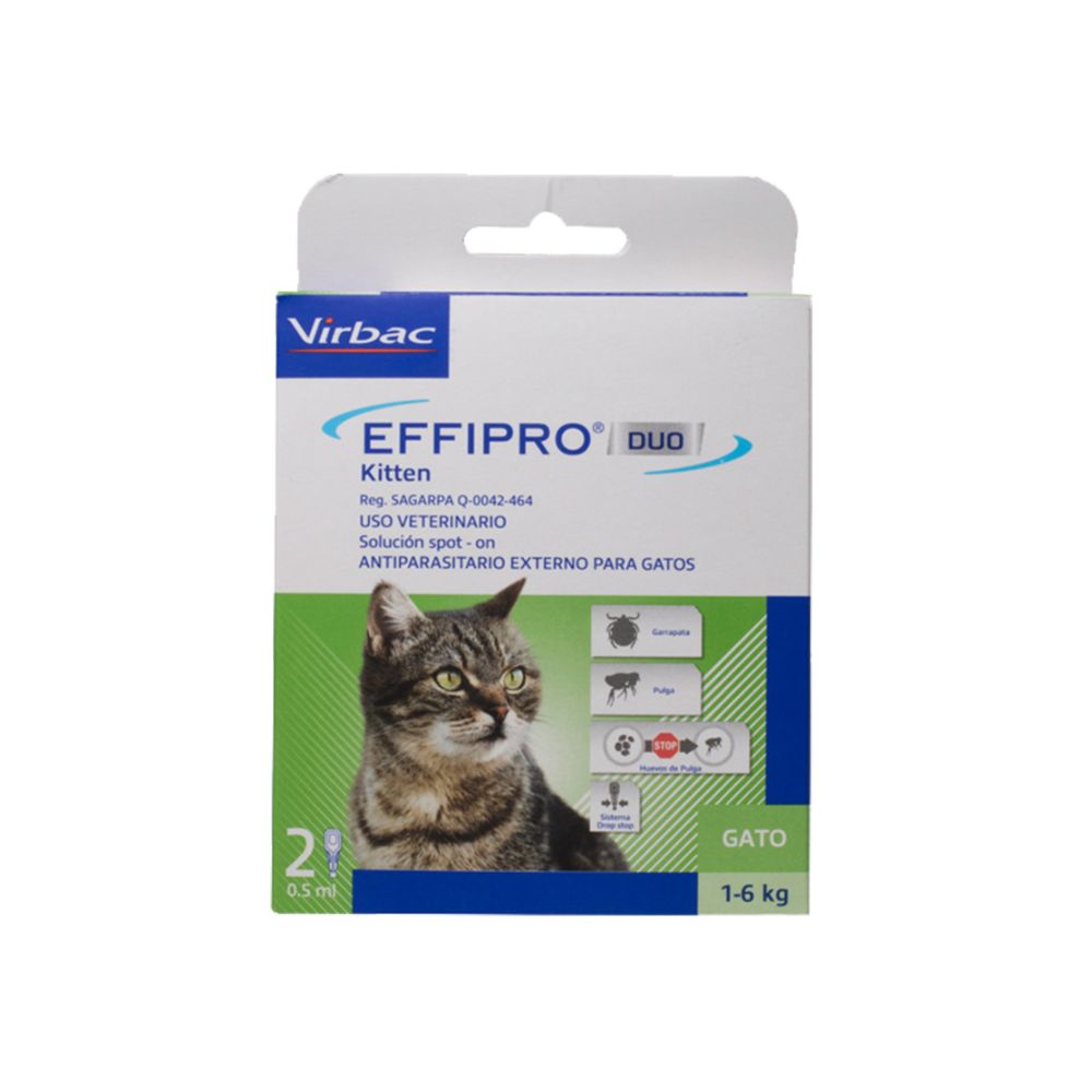 Effipro Duo Gatos 1-6 Kg Pipeta antipulgas y antigarrapatas con acción prolongada que elimina parásitos adultos e interrumpe su ciclo...