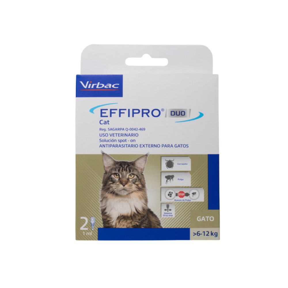 Effipro Duo Gatos 6-12 Kg Pipeta antipulgas y antigarrapatas con acción prolongada que elimina parásitos adultos e interrumpe su ciclo...