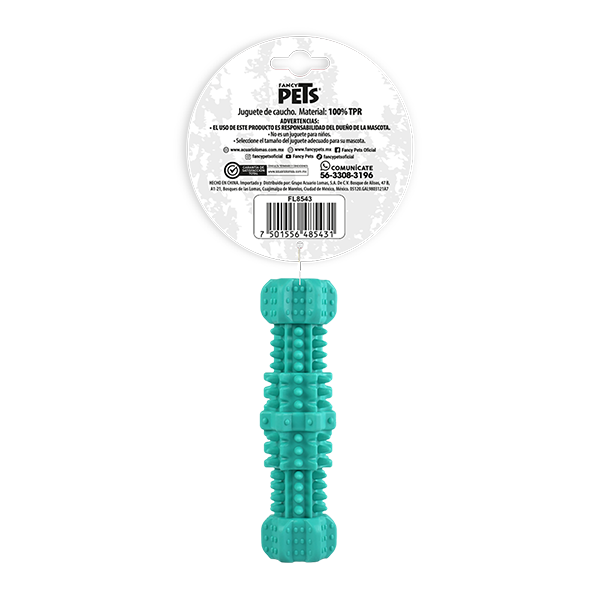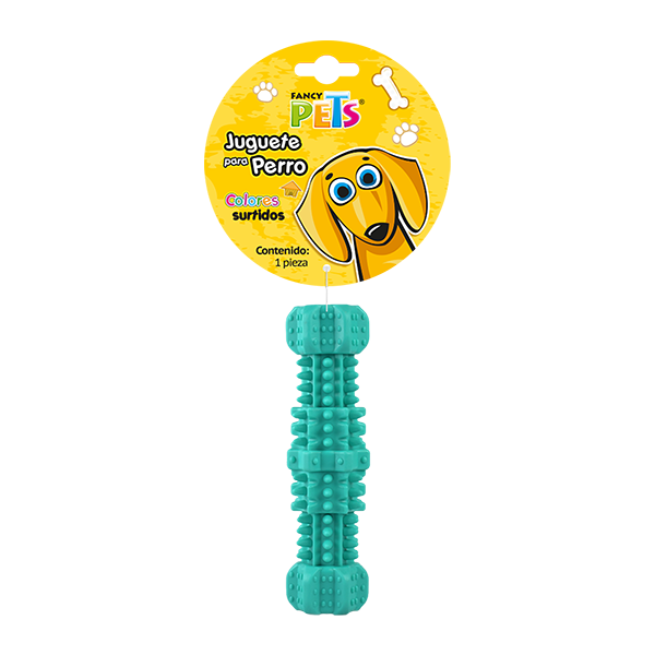 el fancy pets juguete de caucho mancuerna pesada spiky es perfecto para perros medianos y grandes con gran energía y fuerza mandibular. su diseño tipo mancuerna no solo estimula el juego físico, sino que su peso y textura con picos suaves (spiky) aportan un reto adicional que fortalece la mandíbula y masajea las encías, promoviendo la salud bucal. fabricado con caucho duradero y resistente, este juguete está diseñado para soportar largas sesiones de juego, tanto de lanzamiento como de mordida, ayudando también a reducir el estrés y el aburrimiento en tu mascota.
