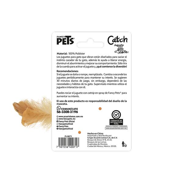 la vibración imita el comportamiento de una presa viva, incitando al gato a acechar, perseguir, atrapar y morder. su tamaño compacto (~8?cm de largo por aprox. 10?g) lo hace ideal para gatos de todas las edades y razas, especialmente para instigar el ejercicio físico y mental.