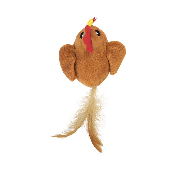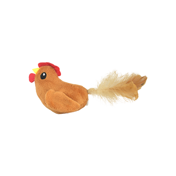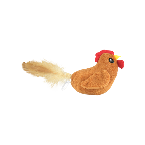 juguete interactivo en forma de gallina que vibra, diseñado para estimular el instinto de caza y el juego activo de los gatos.