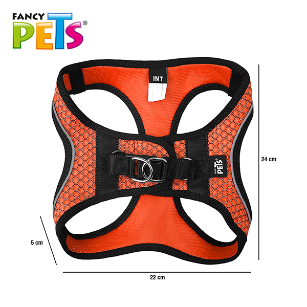 el fancy pets set arnés y correa sportie int naranja está pensado para dueños que buscan funcionalidad y estilo en los paseos con su mascota. este set incluye un arnés ergonómico y una correa a juego, ambos elaborados en materiales resistentes y suaves que brindan comodidad al perro y facilidad de uso para el dueño.