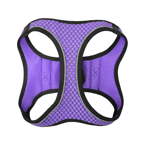 set de arnés y correa deportivo en color violeta intenso, diseñado para brindar comodidad, seguridad y estilo en los paseos de perros pequeños y medianos.