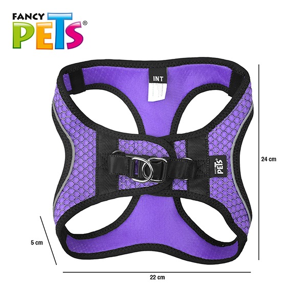 el fancy pets arnés y correa sportie violeta intenso combina funcionalidad y diseño moderno para ofrecer una experiencia cómoda y segura durante los paseos. el arnés tipo pechera está elaborado con materiales resistentes y suaves, con interior acolchado y malla transpirable que mantiene fresca a la mascota, ideal para climas cálidos y actividades prolongadas.