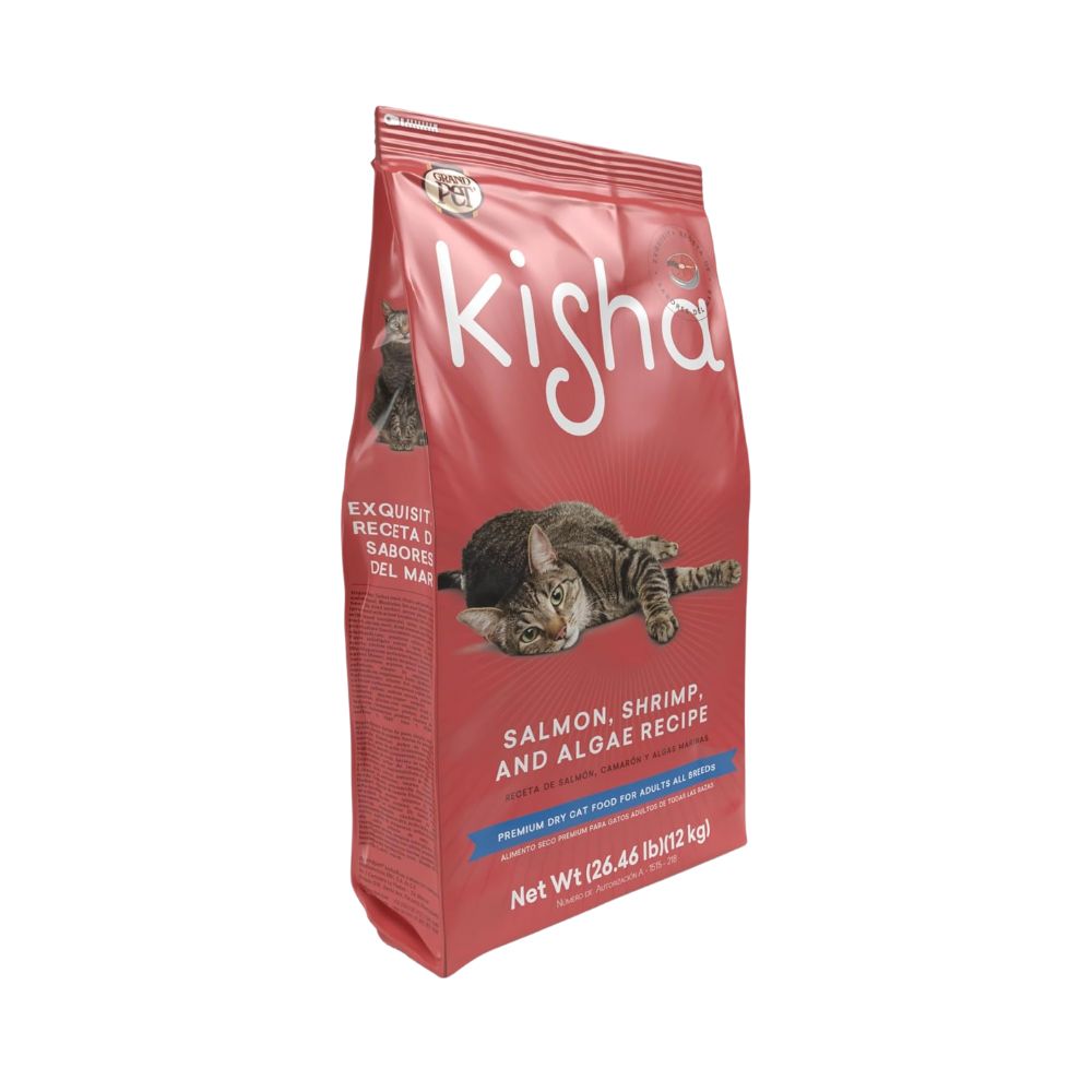 desarrollado para cumplir con el exigente paladar de nuestros reyes, grandpet® kisha® cuenta con una exquisita receta de sabores del mar: salmón, camarón y alga marina.