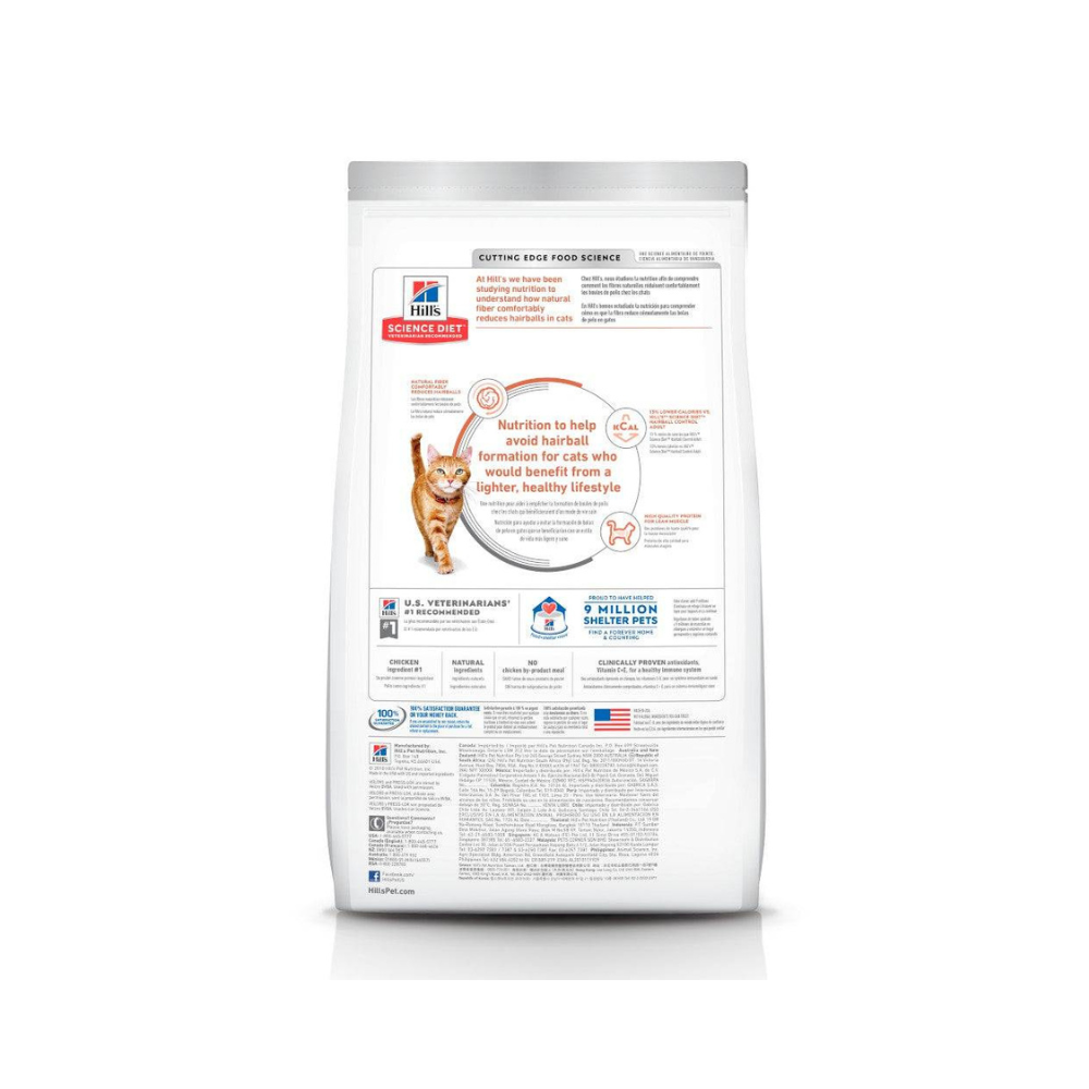 Alimento completo y balanceado formulado para apoyar la eliminación natural de bolas de pelo en gatos adultos, con control de peso.