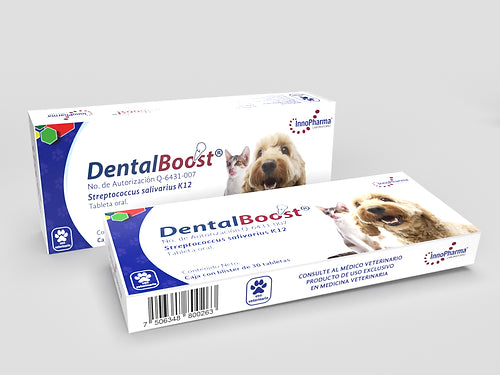 dental boost® es una tableta orodispersable palatable para el control de placa dentobacteriana disminuyendo el mal olor bucal en perros y gatos.