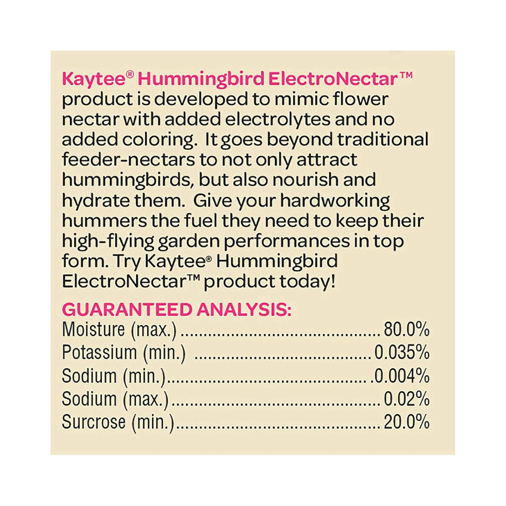 El Kaytee Electro Néctar es un concentrado de alimento natural que no solo atrae a los colibríes, sino que también los nutre e hidrata, proporcionándoles la energía que necesitan para mantenerse activos y saludables.