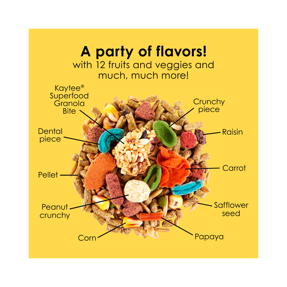 ¡La hora de comer es una fiesta con Kaytee Fiesta! Este alimento gourmet completo y divertido ofrece a tu cuyo una experiencia deliciosa y nutritiva en cada bocado.