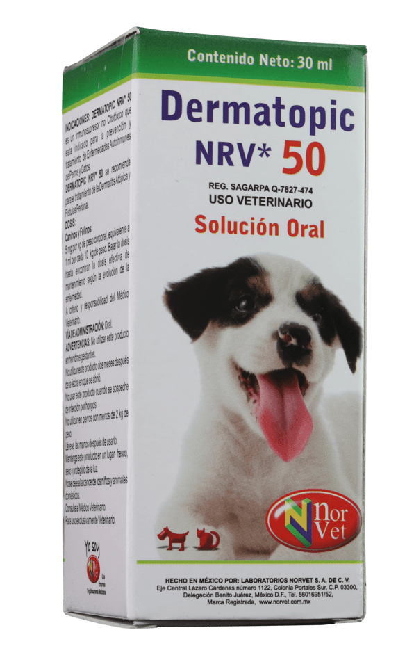 dermatopic nrv* 50 es un inmunosupresor no citotóxico que esta indicado para la prevención y tratamiento de enfermedades autoinmunes de perros y gatos.