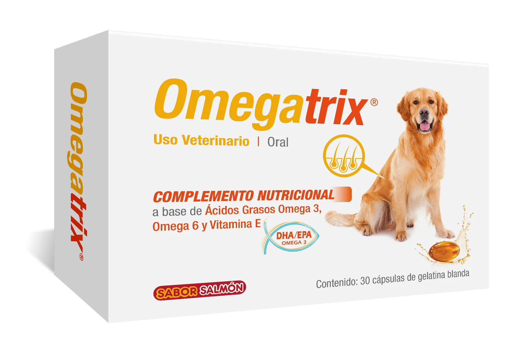 omegatrix ® complemento nutricional a base de ácidos grasos esenciales omega 3, 6 y vitamina e. adecuado para la piel y el pelo en caninos y felinos de exposición y competencia.