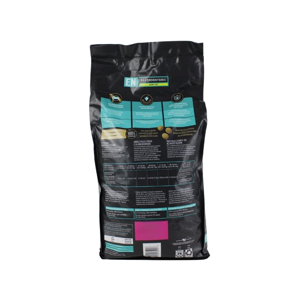 pro plan veterinary diets en gastroenteric low fat canine alimento seco terapéutico para perros adultos con trastornos gastrointestinales, formulado para ser altamente digestible y bajo en grasa, promoviendo la salud intestinal y facilitando la absorción de nutrientes.