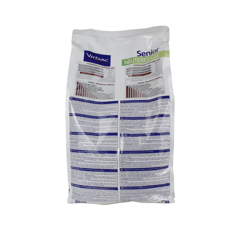 Virbac HPM Senior Neutered Cat está diseñado para gatos adultos mayores de 7 años que han sido esterilizados. Su fórmula incluye un alto contenido de proteína animal de primera calidad, junto con un nivel moderado de carbohidratos y una combinación específica de vitaminas y minerales para apoyar masa muscular, digestión, salud articular y vitalidad.
